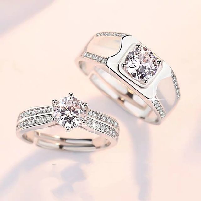 S925 Sterling Silver Couple Ring Lover Pair Rings Zirconia Diamond Ladies Cincin Kapel Lelaki Perempuan Cincin Tunang Shopee Malaysia